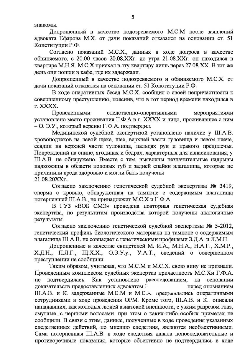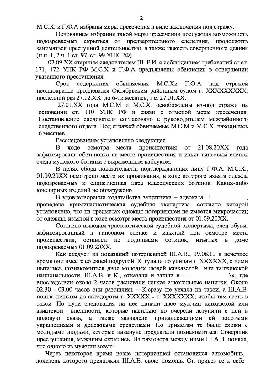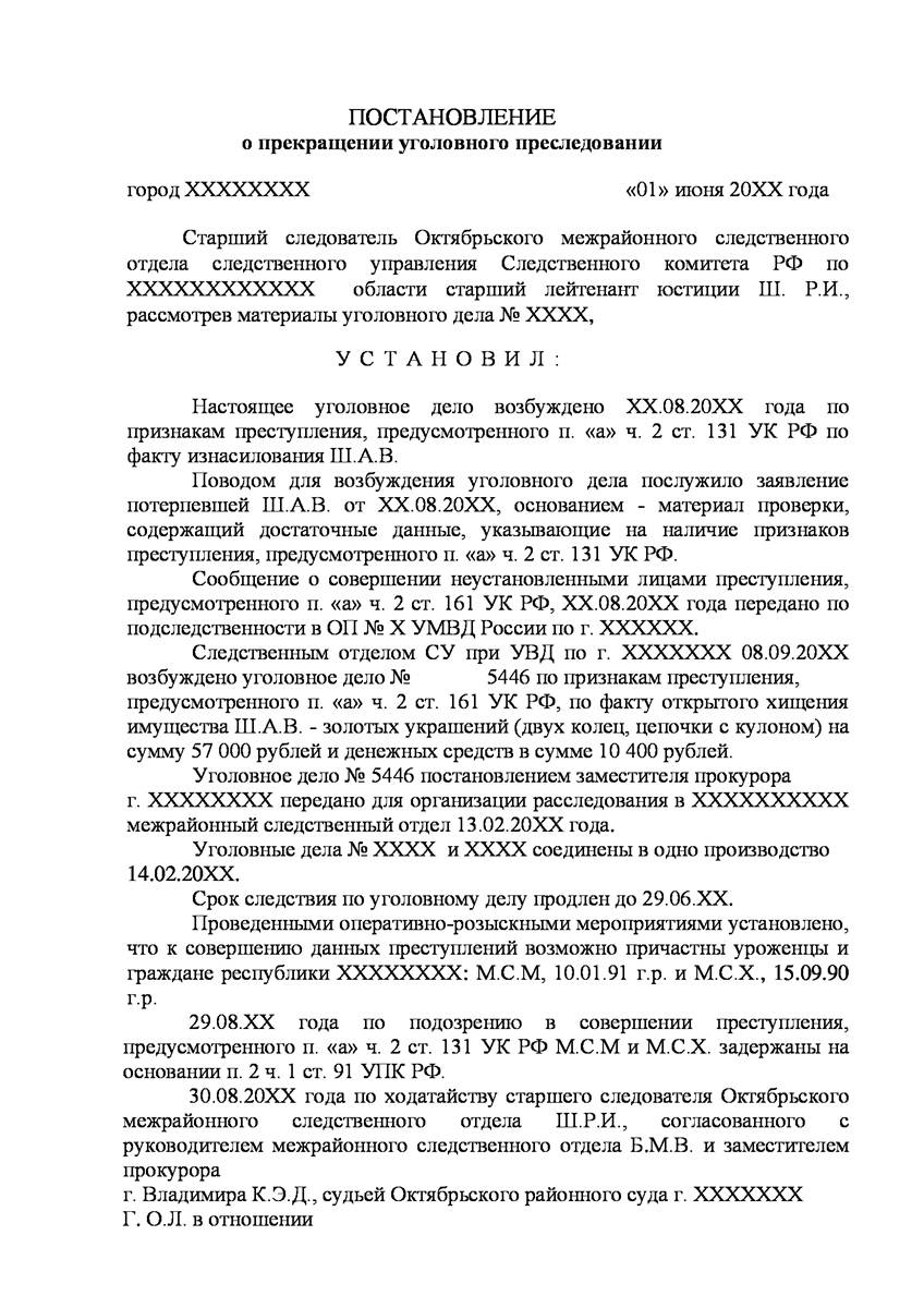 Адвокат в Кирове добился прекращения уголовного дела на стадии предварительного расследования по реабилитирующим основаниям в отношении двух граждан иностранного государства обвиняемых органами предварительно следствия в совершении преступления предусмотренного п. «а» ч.2 ст.131 УК РФ (изнасилование совершенное группой лиц) и п."а" , п."г" ч.2 ст.161 УК РФ (грабёж), наказание за которое предусматривает лишение свободы от восьми до пятнадцати лет, то есть преступление, которое в соответствии с ч.5 ст.15 Уголовного Кодекса Российской Федерации отнесено к категории особо тяжких преступлений.